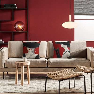 赤いクッションカバーの質感と色合いがお部屋に豊かな表情をもたらし、ソファやベッドを格調高く演出します。
