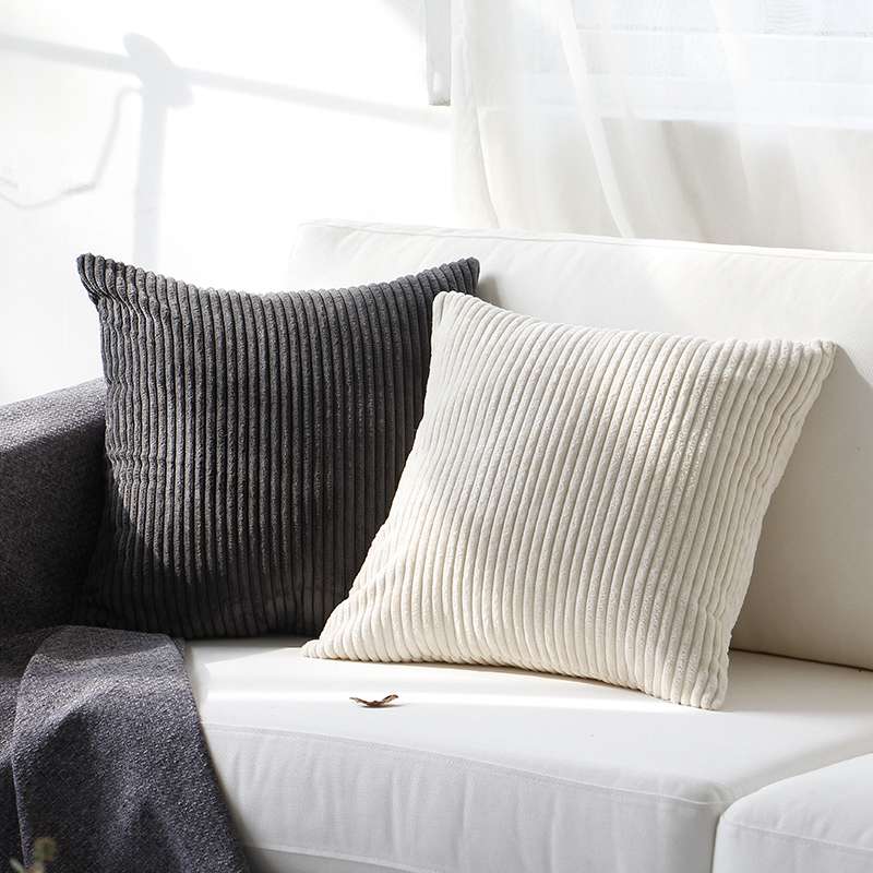 柔らかな手触りと上品な縦縞模様が特徴的なクッションカバーです。