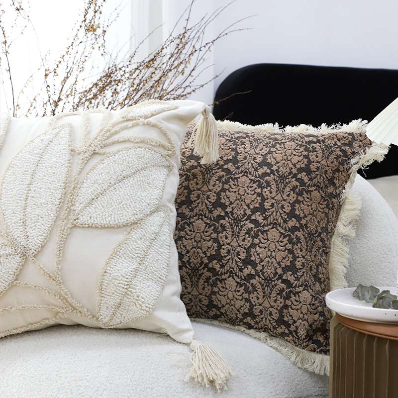 エレガントな刺繍が魅力的なダマスク柄クッションカバー