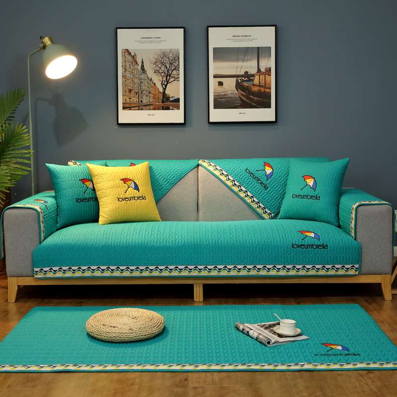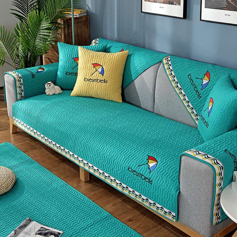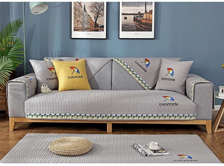 傘のモチーフを用いた精巧な刺繍が施されており、ソファカバーに上品さと個性を添えています。