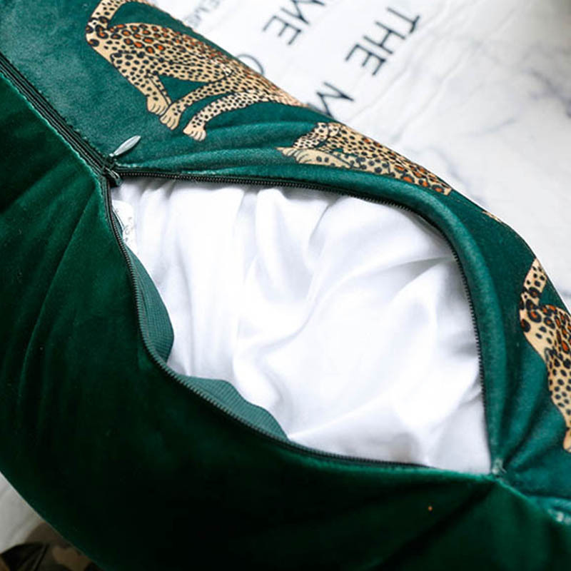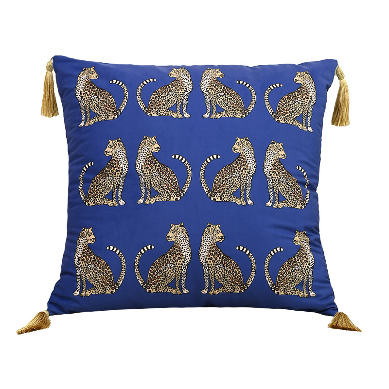 エキゾチックな豹の刺繍が美しいクッションカバーです。