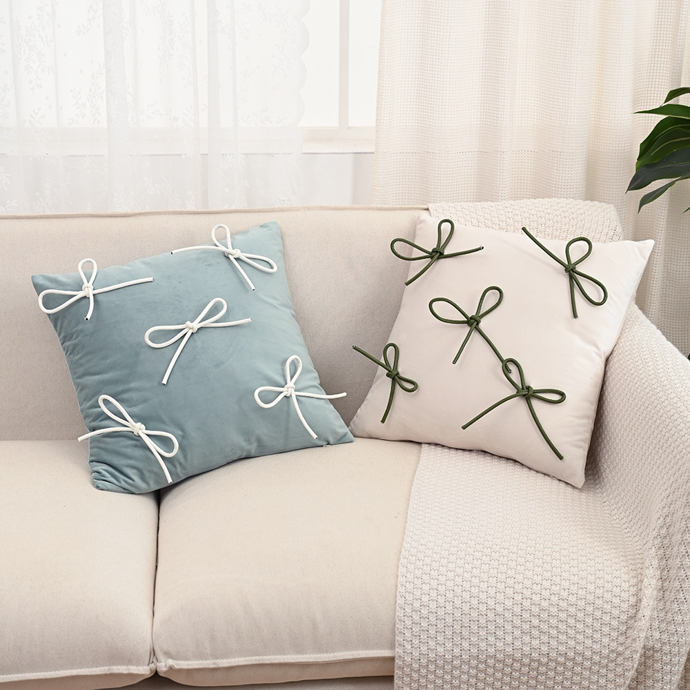 表面に施された複数のリボン刺繍が、お部屋に優しい温かみと遊び心を添えます。