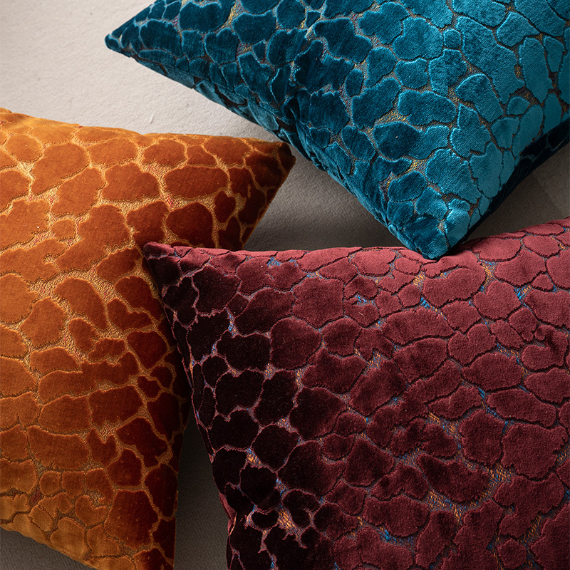 上質なベルベット調の生地に浮き上がる幾何学模様が、お部屋に華やかさと高級感をもたらします。