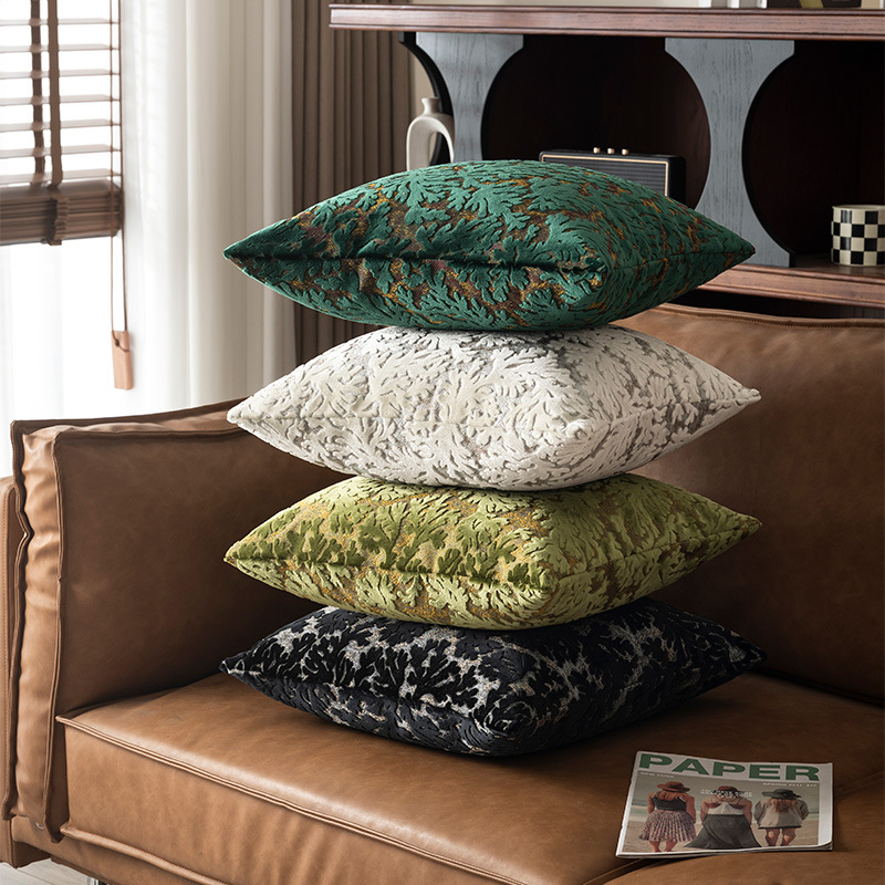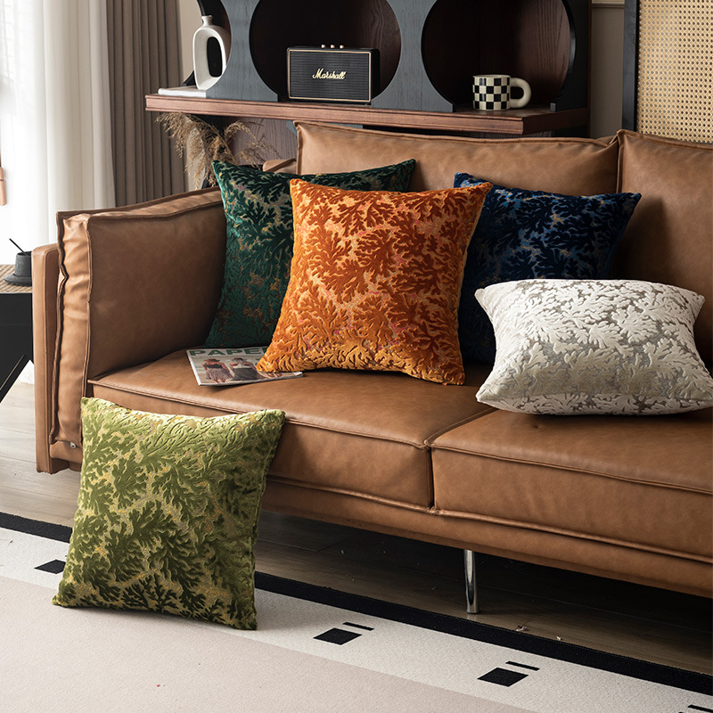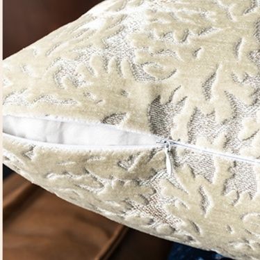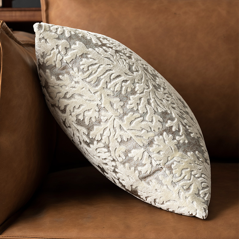 繊細な葉模様が立体的に施された贅沢な質感のクッションです。
