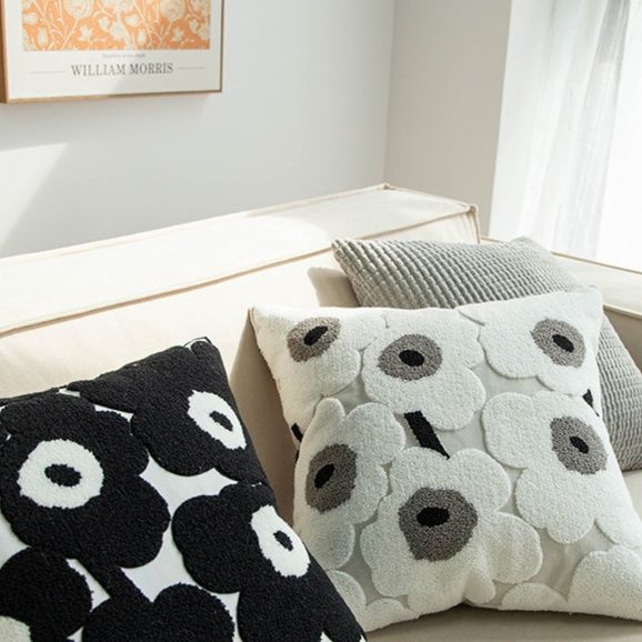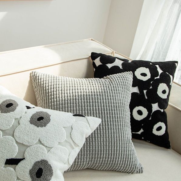 立体的な刺繍加工が施され、モダンで洗練された北欧テイストのインテリアを演出します。