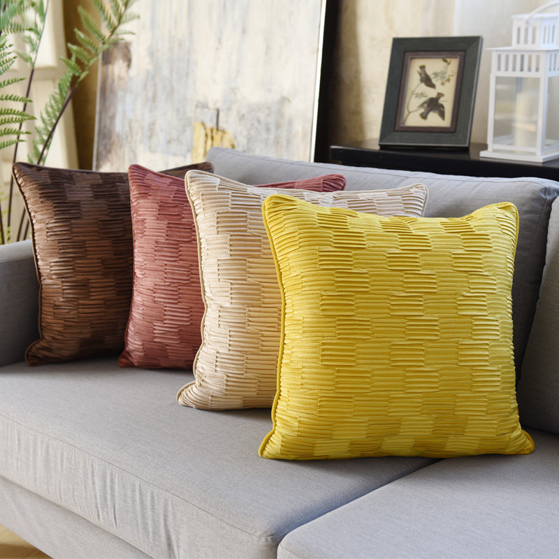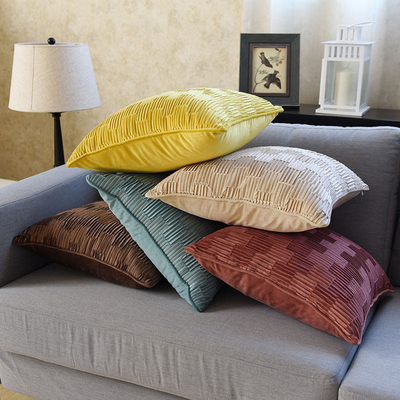 丁寧な手仕事による立体的なプリーツ加工が美しいクッションです。 高級感のあるベルベット調の生地を使用し、規則的な畝状の凹凸が上品な陰影を生み出します。 ソファや寝室を華やかに演出するクッションカバーとして最適で、触り心地も滑らかです。 複数並べて飾ることで、より一層お部屋に奥行きと洗練された雰囲気をもたらします。