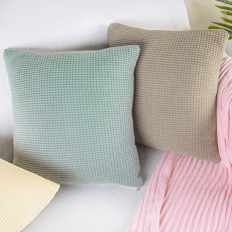 立体的なワッフル織りが特徴的なクッションです。